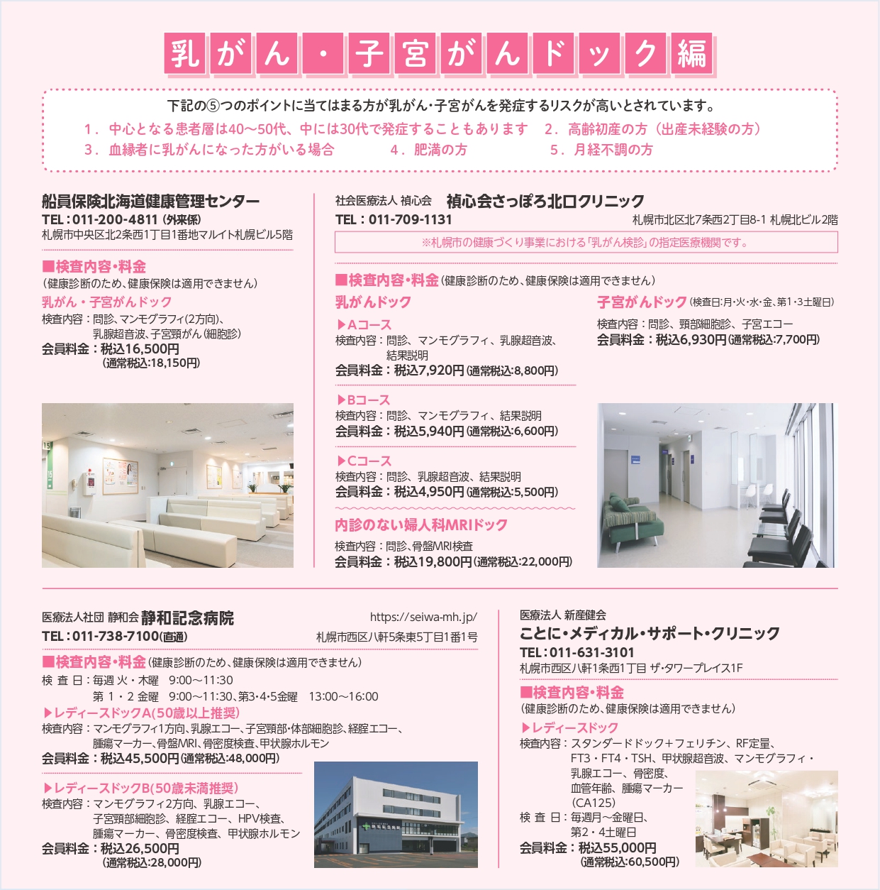 札幌商工会議所では医療機関と提携して、乳がん・子宮がんドックを特別料金で受診していただけるサービスを実施しております。
