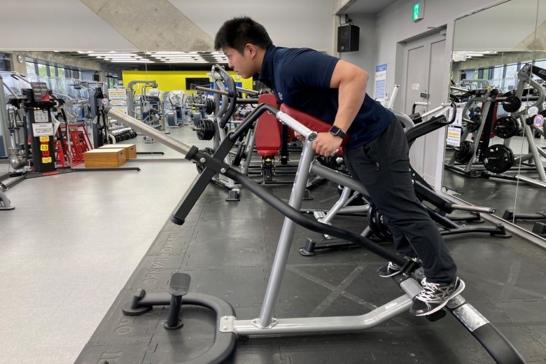 今回は、背中や腰回りの筋力を向上させることができ、腰痛予防、改善にお勧めのTバーロウをご紹介いたします。